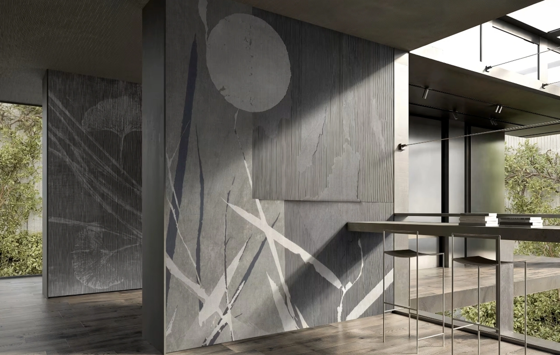 La Carta da parati è il miglior acquisto per arricchire i tuoi spazi! Ultima un'ambientazione design con il modello Basalto di Glamora.