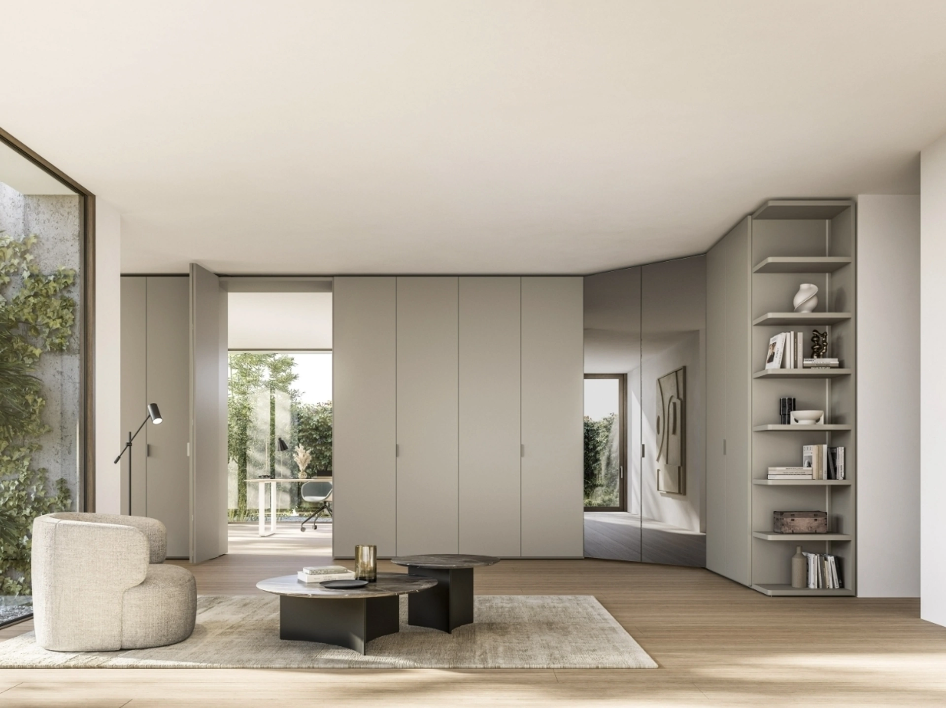 Per completare alla perfezione il concept d'arredo, scegli le nostre proposte di Arredamento Casa delle migliori marche, letti, armadi e comodini diversificati per classe, grandezza e materiale. Armadio Angolare Anta Nexta di Sangiacomo: compila il form, contattaci e dai vita alla stanza del relax come l'avevi immaginata. La camera da letto è dedicata al riposo, deve quindi risultare arredata al meglio e completa di mobili e complementi in grado di creare un'atmosfera sempre rilassante. Contattaci per informazioni e preventivi e potrai completare la camera da letto che hai sempre desiderato grazie ad una diversificata disponibilità di contenitori moderni come questo armadio in laccato opaco nella fotografia.