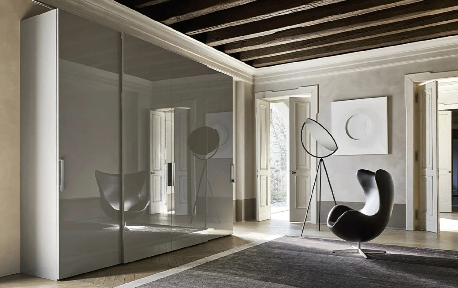 Cerchi un guardaroba in laccato lucido? Clicca e scopri armadiature a muro con ante scorrevoli di Sangiacomo.