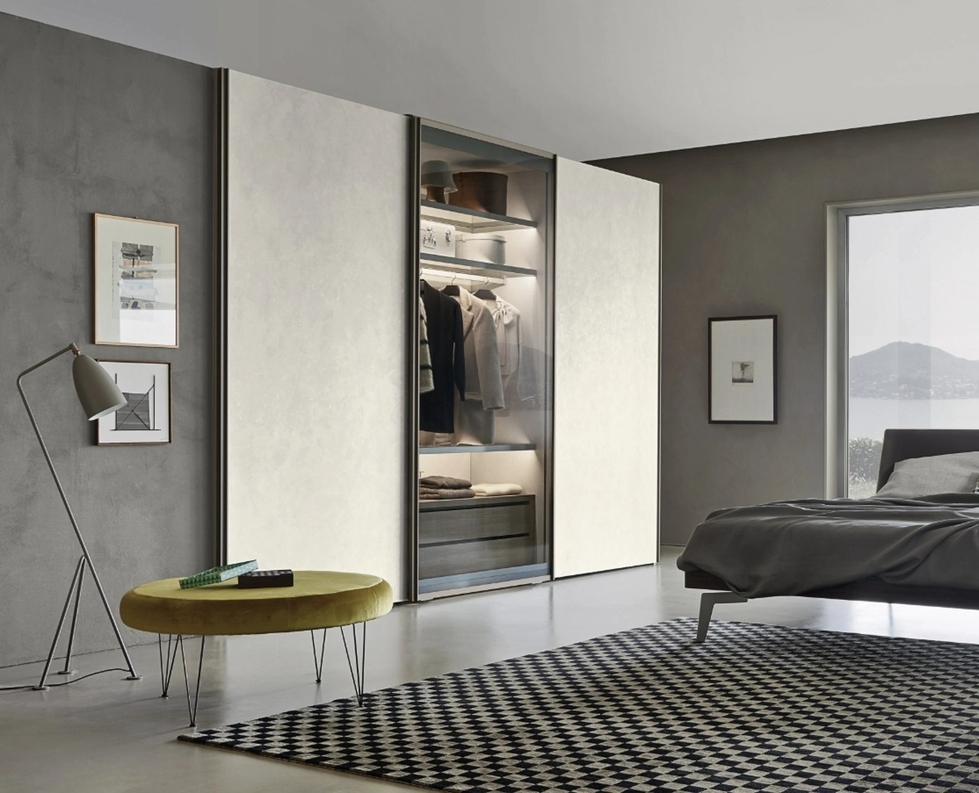 Eccoti l'armadio Scrigno Materico Scorrevole in melaminico di Sangiacomo! Una ricca gamma di armadi a muro con ante scorrevoli.