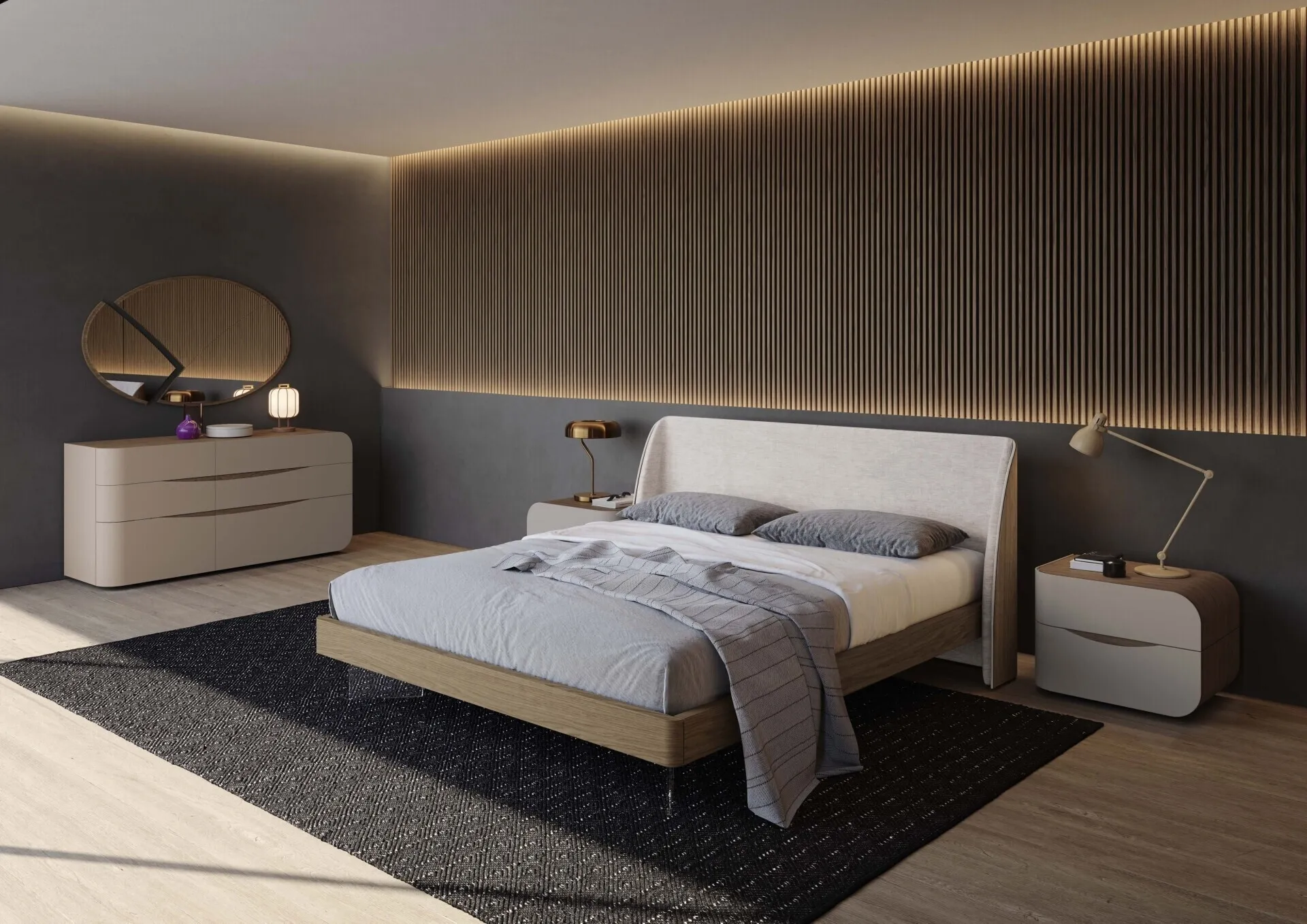 Se desideri letti matrimoniali imbottiti, eccoti il modello Eikon in tessuto per impreziosire la zona notte.