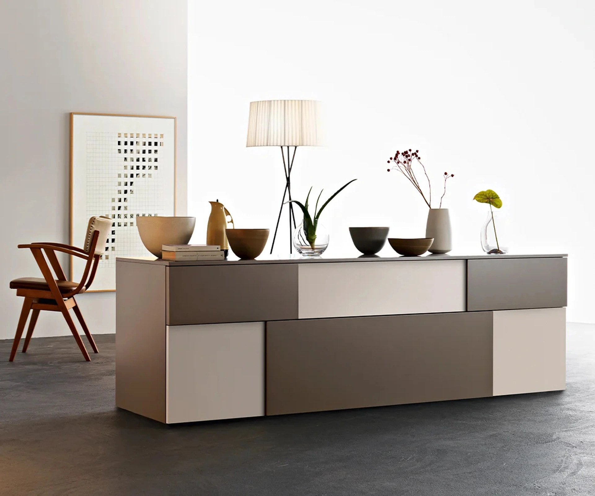 Arreda un soggiorno pratico e dinamico con questa madia Incontro 03 di Sangiacomo: scopri le più originali Madie in laccato opaco.