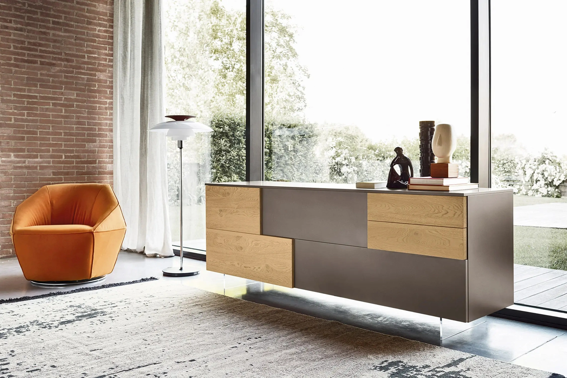 Arreda un soggiorno dinamico e operativo con questa madia Incontro 06 di Sangiacomo: scopri le più originali Madie in laccato opaco.