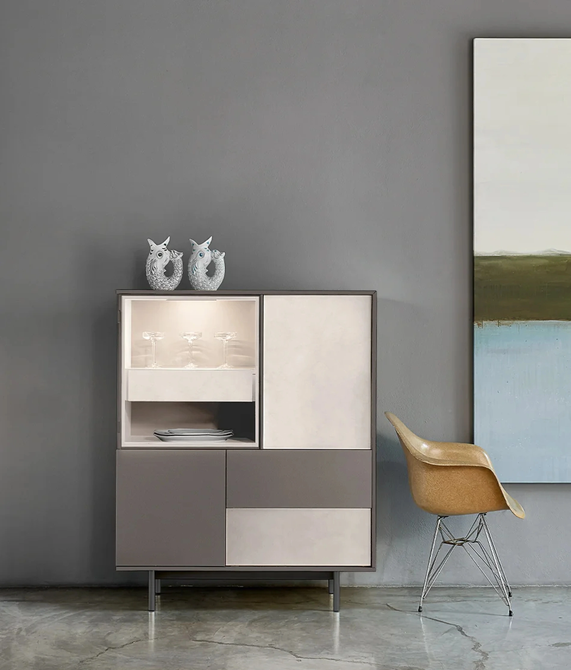 Arreda un living operativo e pratico con questa madia Scrigno 02 di Sangiacomo: scopri le più esclusive Madie in laccato opaco.