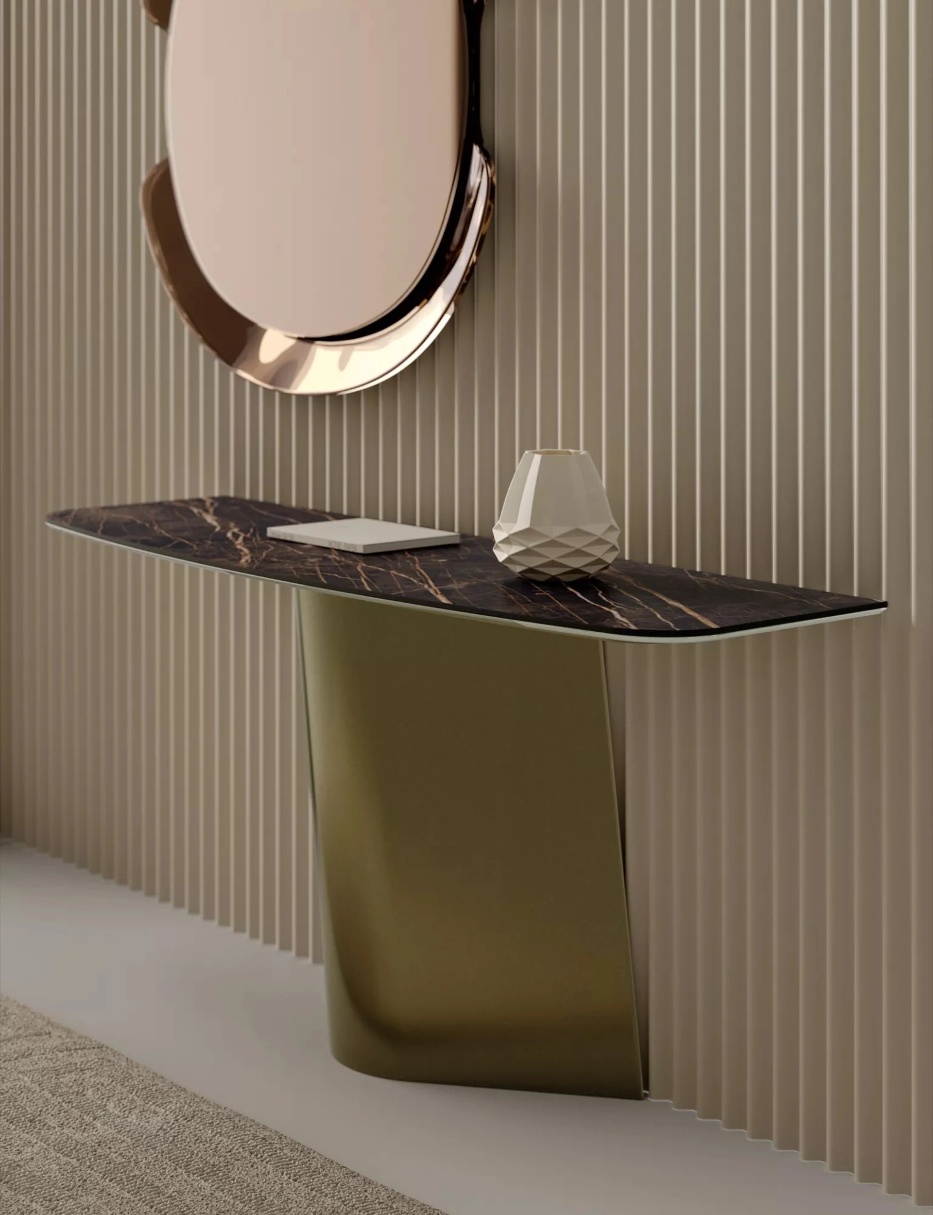 Vuoi ammobiliare un ingresso dinamico e operativo? Ti presentiamo il mobile Kimono Consolle di Bontempi in gres, pensato per spazi design.