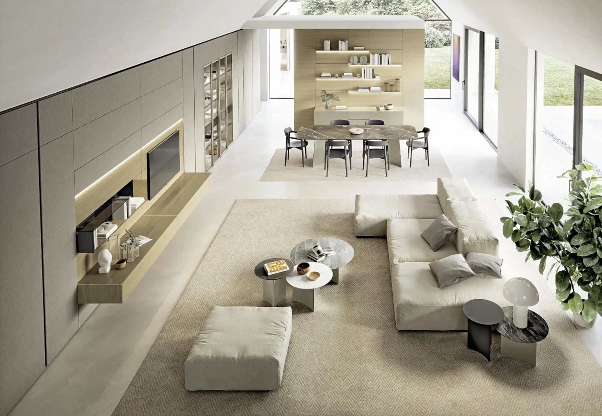 Vuoi progettare un soggiorno dinamico e operativo? Ti offriamo la parete attrezzata Domino Boiserie 02 Sangiacomo dalle linee decise moderne.