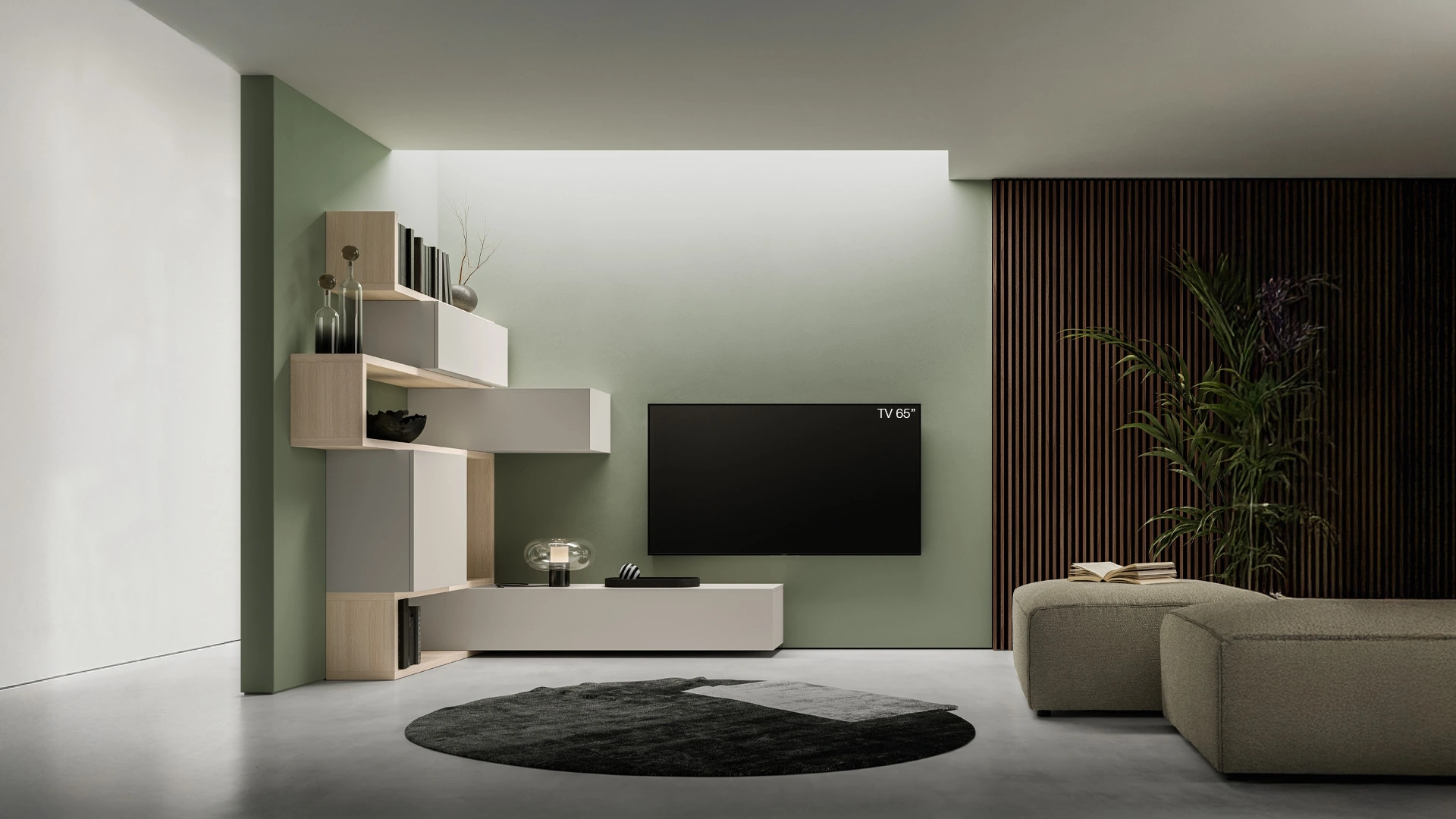 Pareti attrezzate e mobili soggiorno SantaLucia: clicca e scopri il modello Pratico PTG409 e potrai valorizzare stanze moderne di ogni tipo.