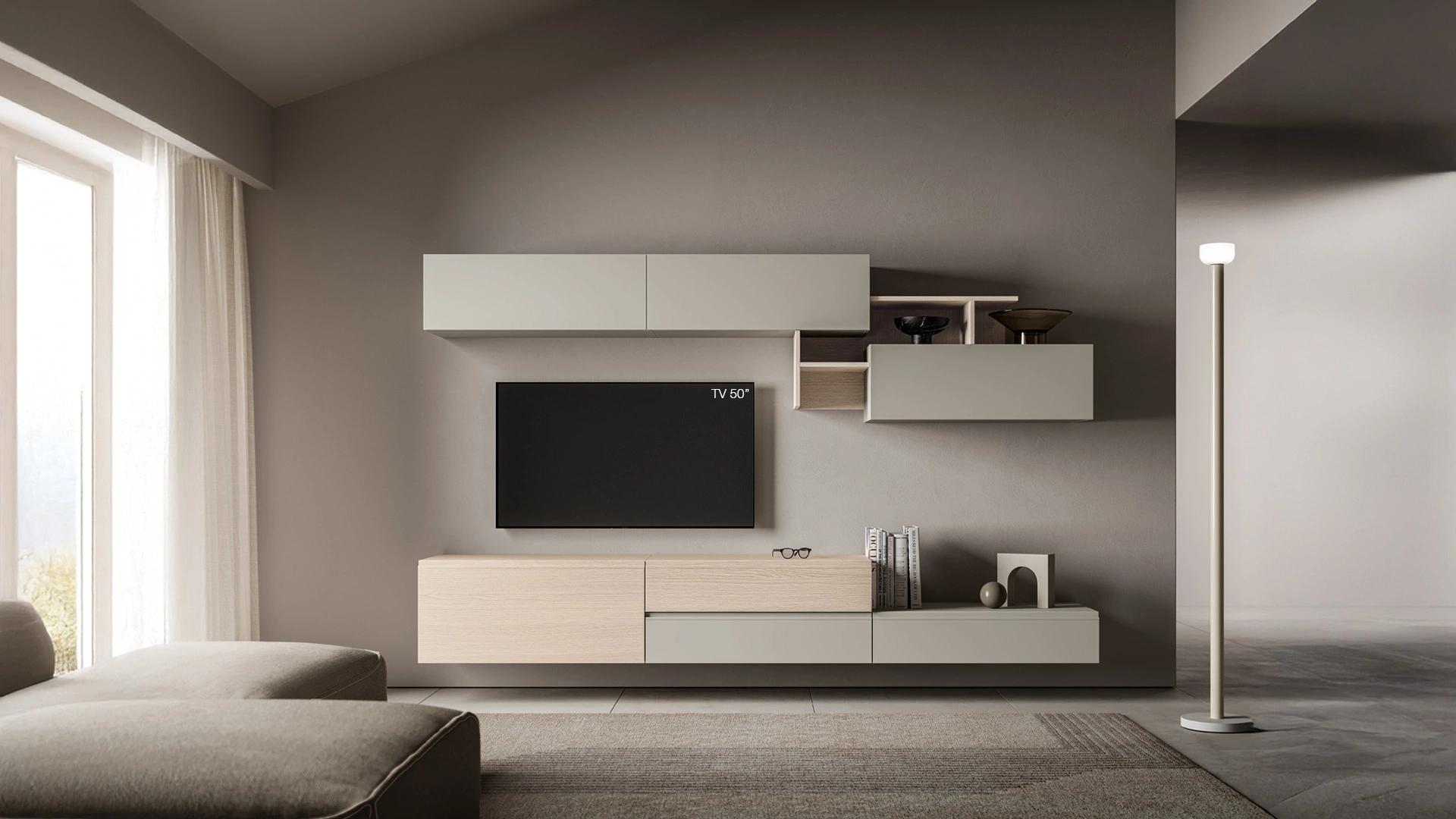 Pareti attrezzate e mobili giorno SantaLucia: clicca e scopri il modello Pratico PTG446 e potrai completare stanze moderne di ogni tipo.