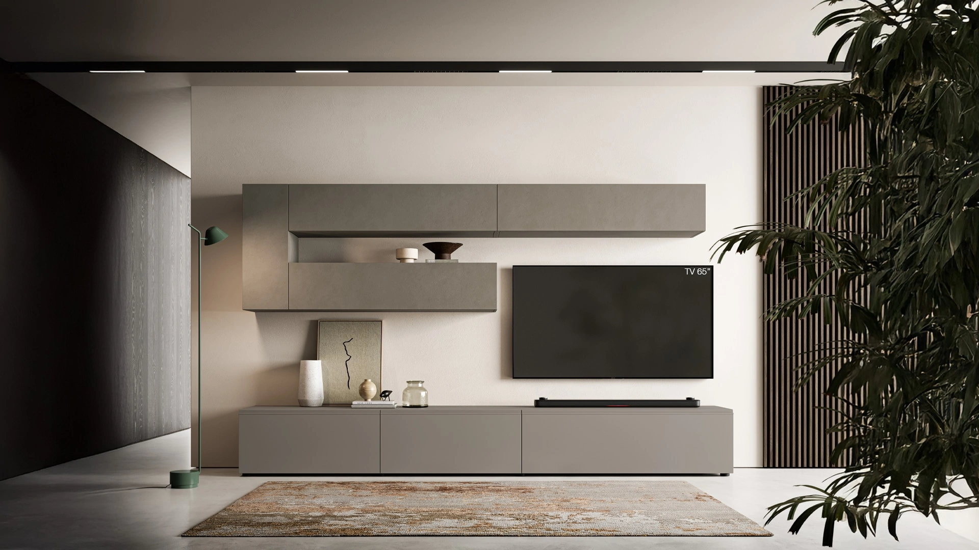 Pareti attrezzate e mobili soggiorno SantaLucia: clicca e scopri il modello Pratico PTG448 e potrai completare stanze moderne di ogni genere.