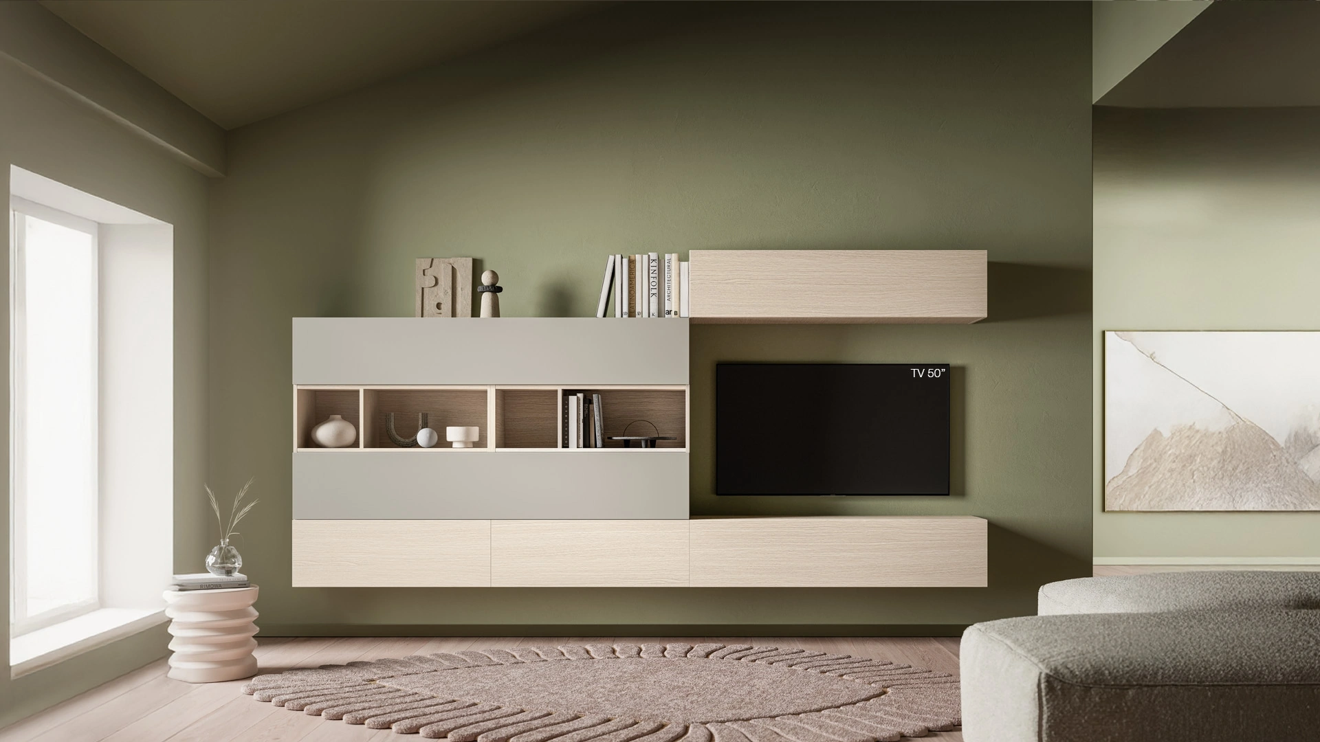 Pareti attrezzate e mobili soggiorno SantaLucia: clicca e scopri il modello Pratico PTG449 e potrai arricchire stanze moderne di ogni genere.