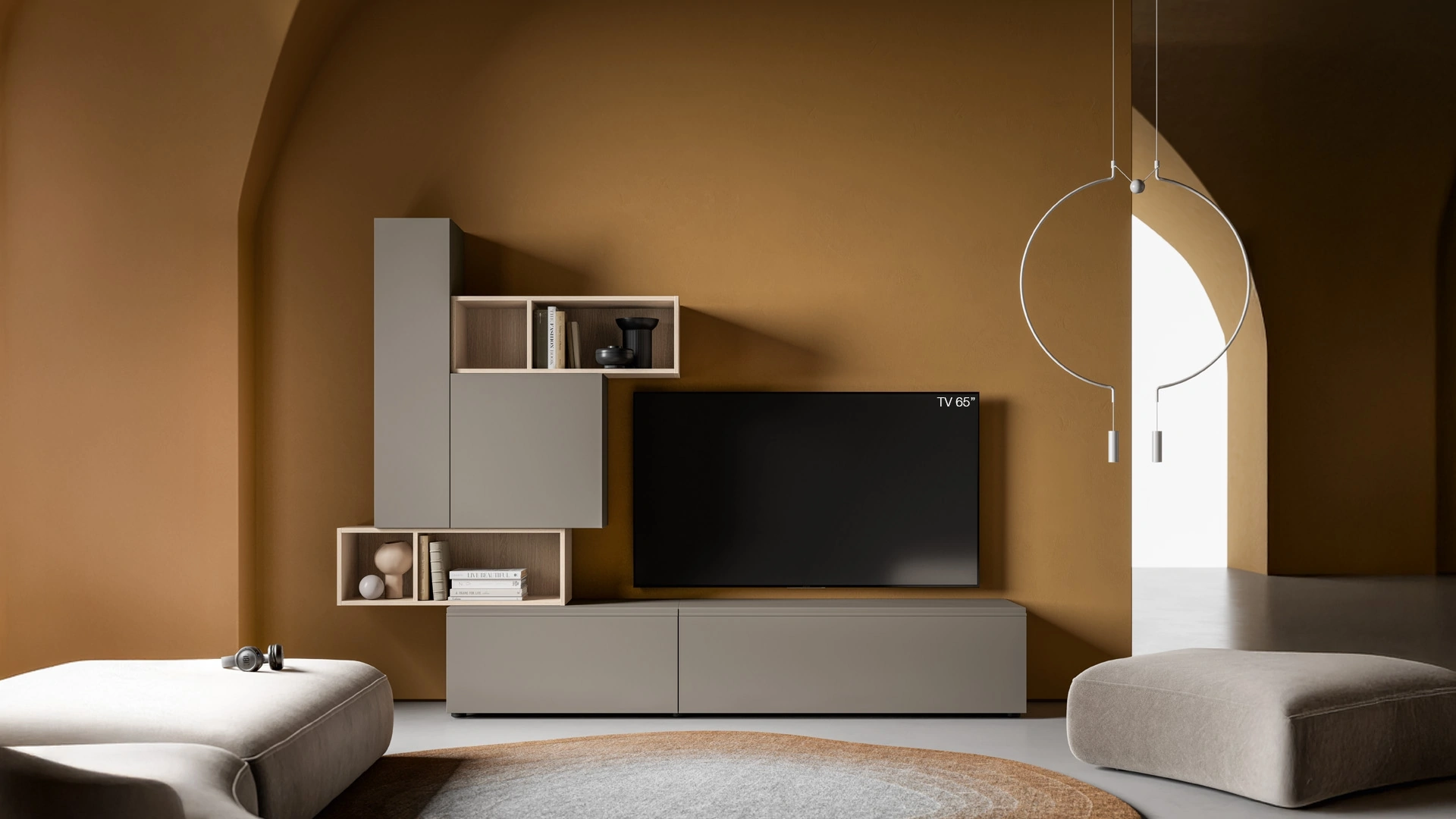 Vuoi allestire un living pratico e operativo? Ecco a te la parete attrezzata Pratico PTG452 SantaLucia dalle linee decise moderne.