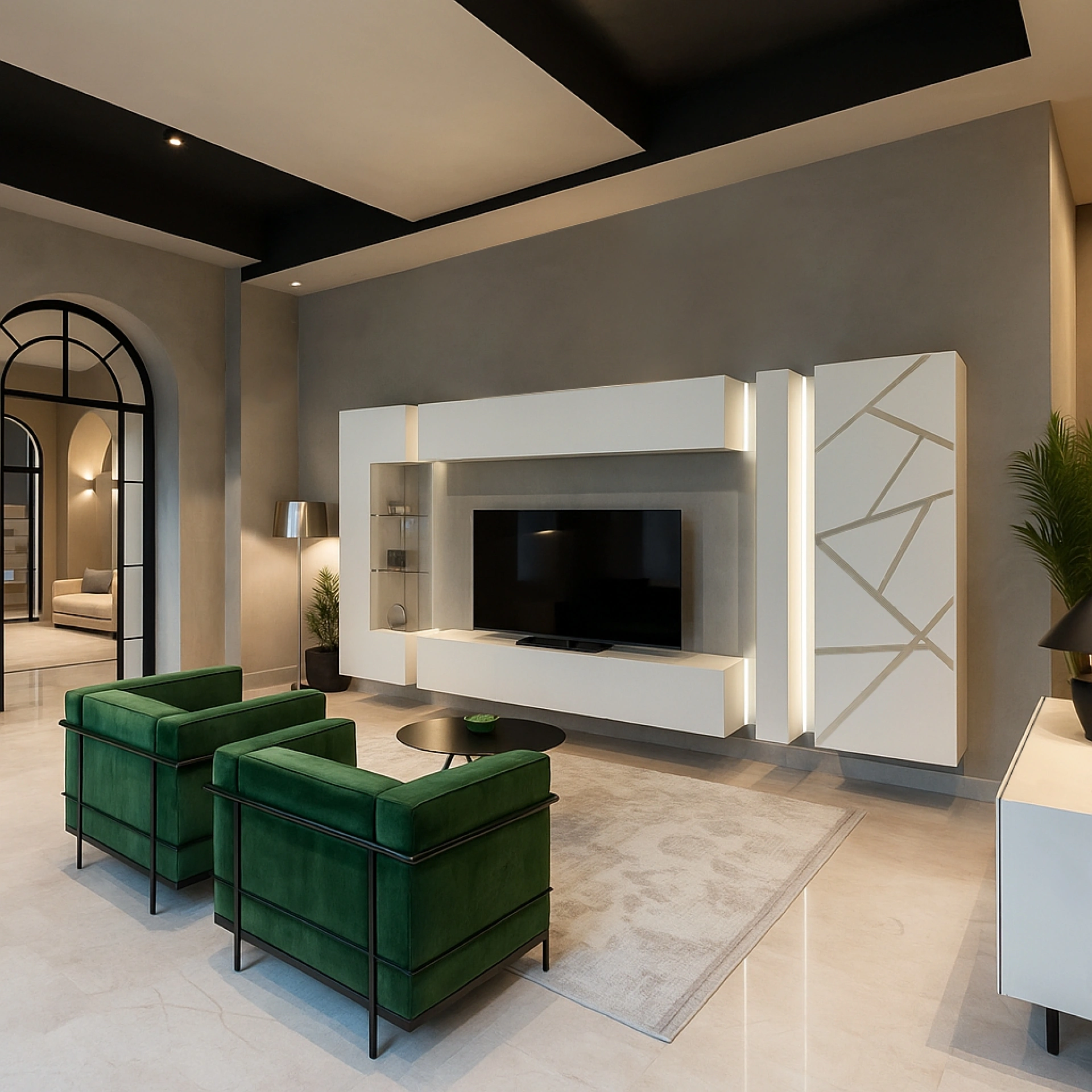Vuoi progettare un living operativo e pratico? Ti presentiamo la parete attrezzata Soggiorno Bianco Voltan dalle forme decise moderne.