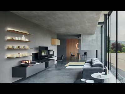 Attraverso un gioco pratico e dinamico di incastri, sovrapposizioni, accessori a giorno o vani chiusi, le Pareti Attrezzate moderne arredano il living usufruendo al meglio di ogni spazio. Negli utlimi tempi le Pareti Attrezzate hanno conquistato un posto fondamentale in fatto di Arredamento Casa: sono arredi plurifunzionali e salvaspazio sempre realizzabili su misura. Per informazioni e preventivi sulla Parete Attrezzata Soggiorno con Librerie Cemento di Voltan nella fotografia contattaci! Il modello mostrato in foto è realizzato in laccato opaco ma grazie ad una vasta gamma di finiture, cromie e forme potrà adattarsi a spazi di ogni tipo. Questa parete attrezzata è una delle più belle soluzioni del marchio e ti consentirà di allestire la zona giorno secondo le più personali problematiche abitative.
