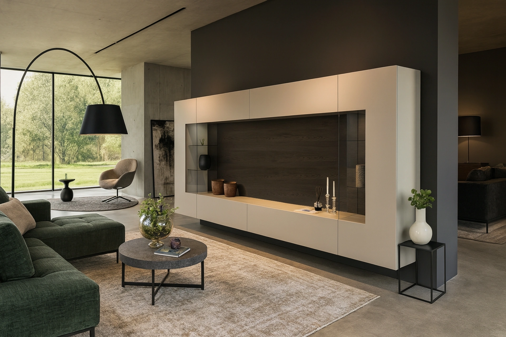 Clicca e scopri di più sulla parete attrezzata Soggiorno con schienale Carbone dell'azienda Voltan: è la soluzione dalle linee moderne perfetta per te.