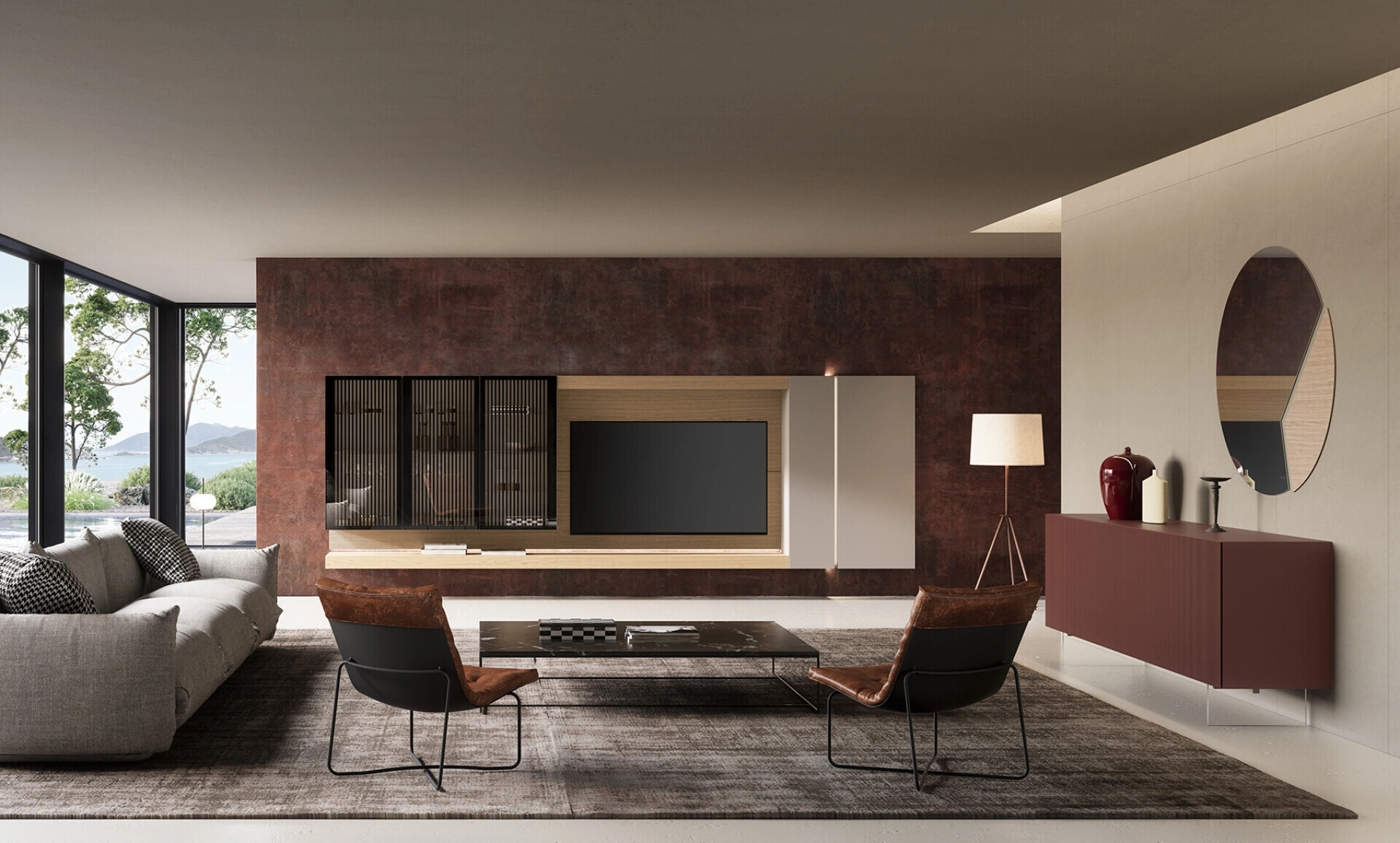 Se desideri pensili e pareti attrezzate moderne, prediligi il modello Soggiorno Lucifer con schienale Quercia di Voltan: clicca e scopri di più!