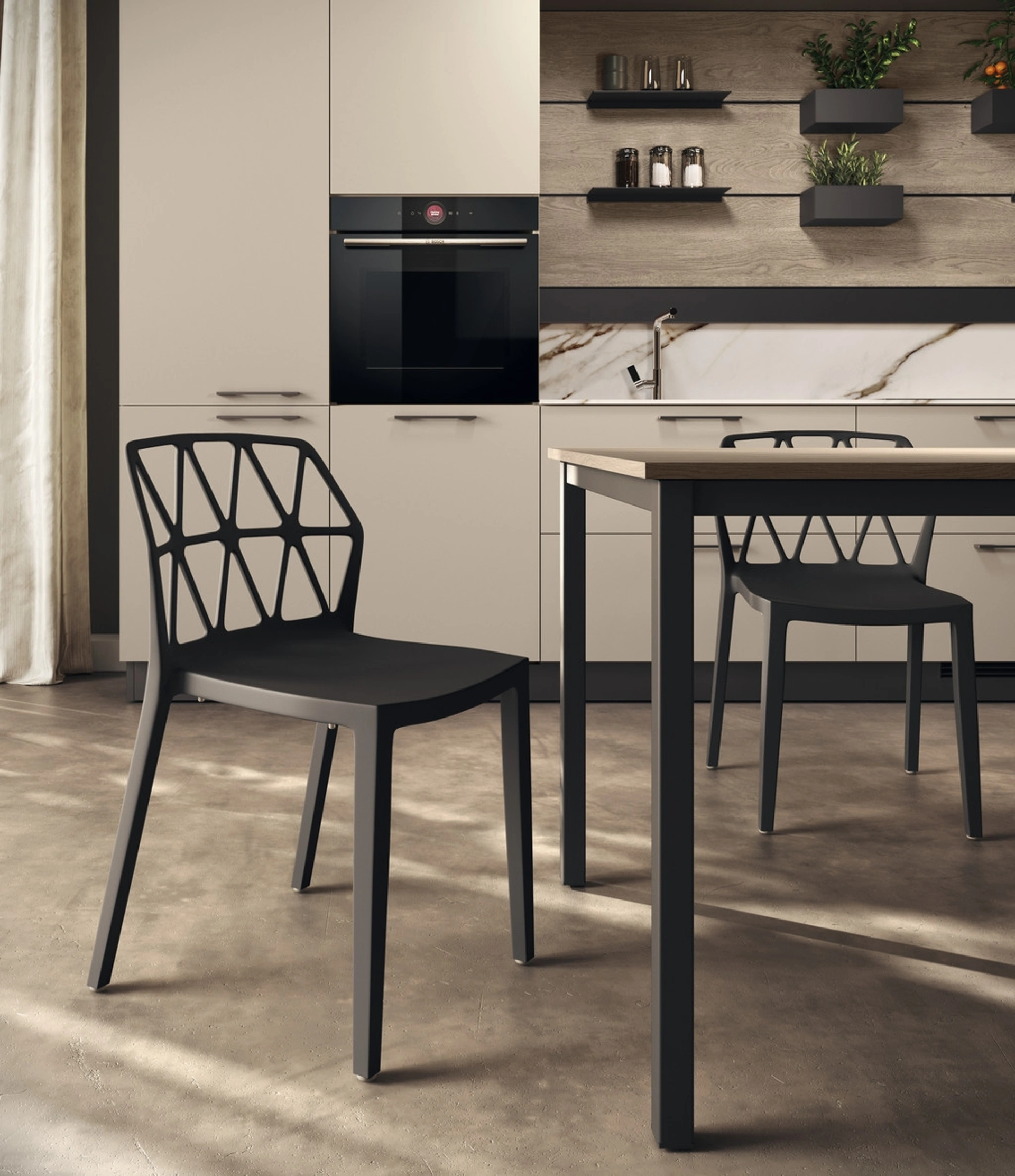 Ti offriamo la sedia da cucina Polygon per atmosfere moderne, tra le più originali Sedie impilabili di Scavolini.
