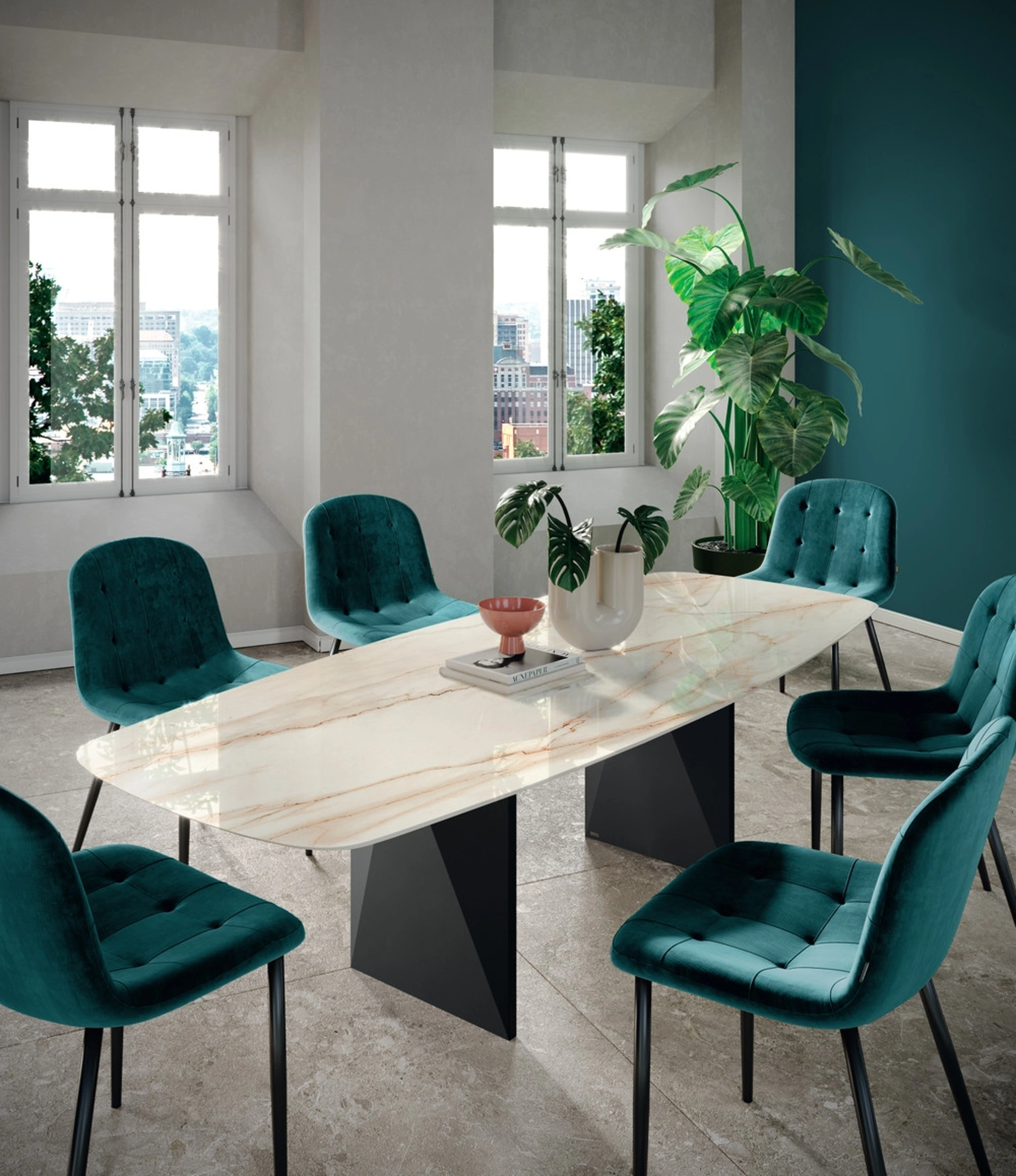 Se sei alla ricerca di tavoli allungabili moderni, ti offriamo il modello da pranzo in gres Boston della firma Scavolini.