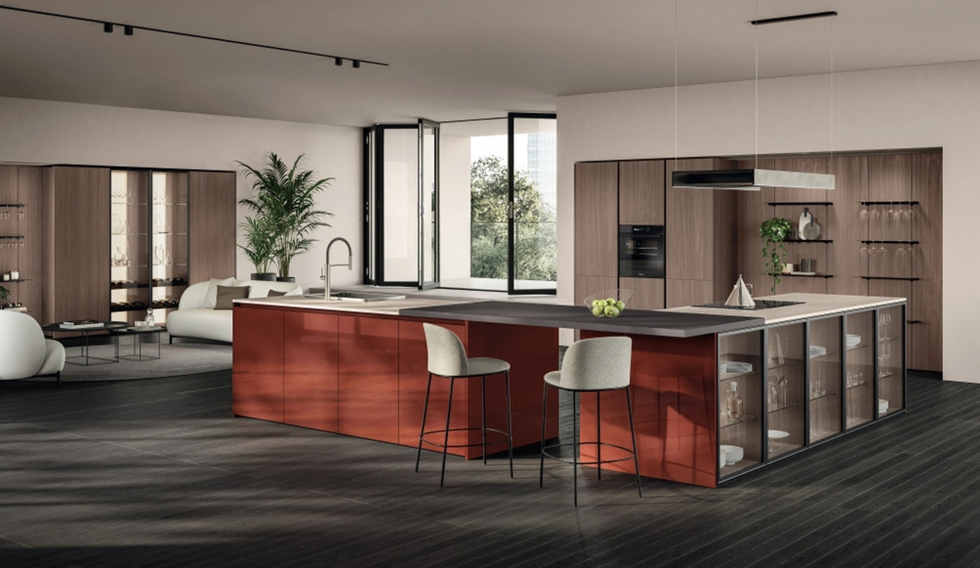 Se vuoi una cucina moderna Scavolini, Essenza 03 in laccato lucido ti aspetta nel nostro negozio di Cucine Moderne con isola.
