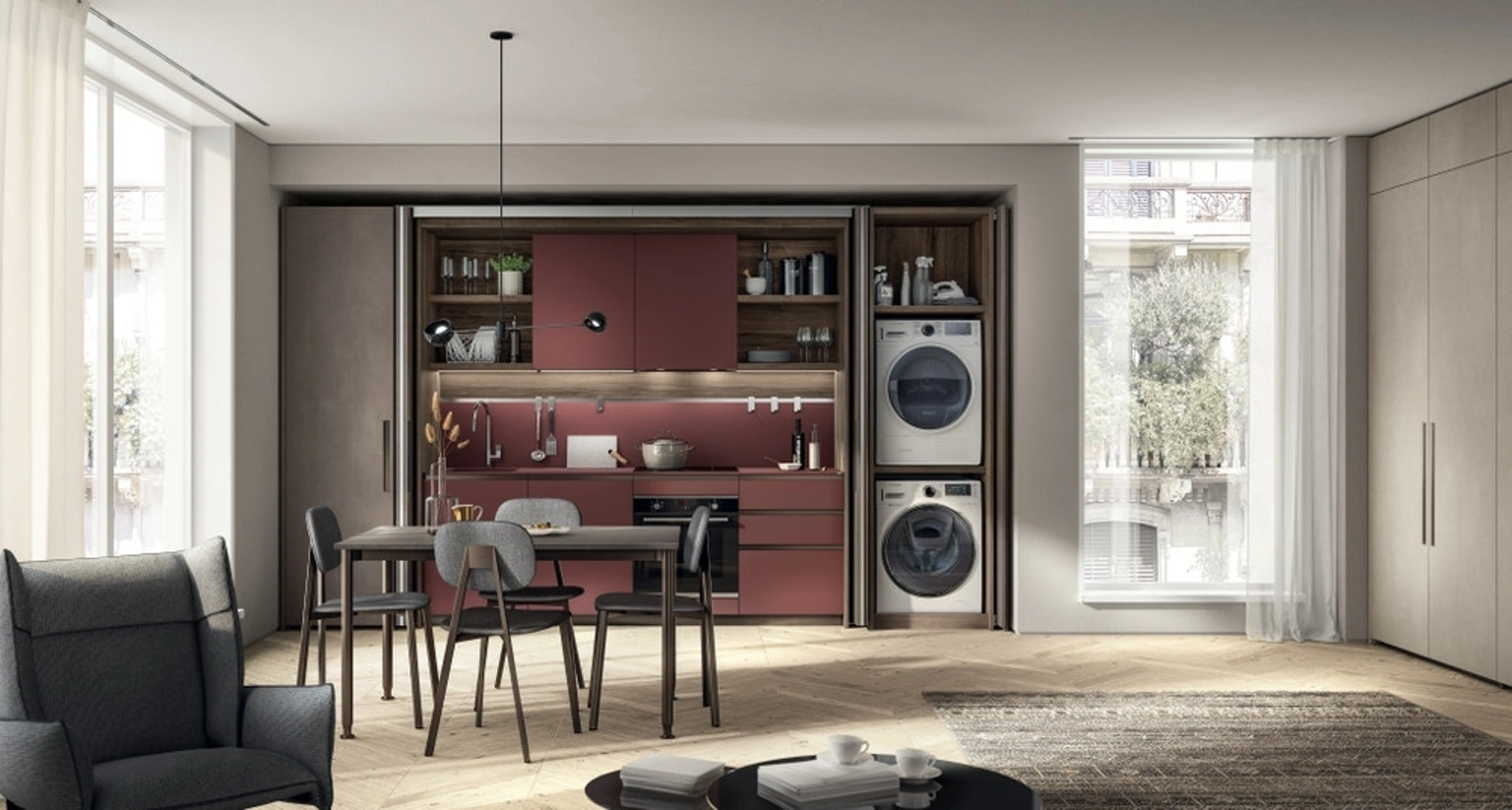 Cucine su misura Scavolini: prediligi il modello Boxi 07 in laminato tra le nostre soluzioni monoblocco salvaspazio!
